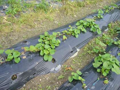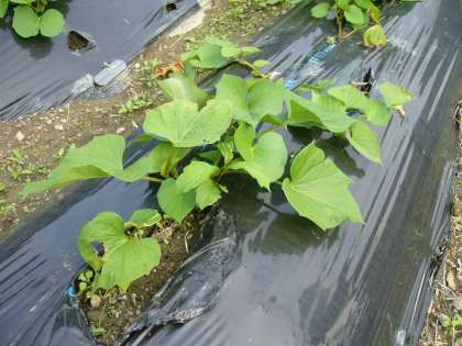 サツマイモが根付き、葉っぱを増やしつつあります。これからです。