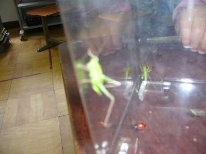 バッタの観察です。アオムシ〜さなぎ〜成虫とないますが、小さいバッタ〜少し大きくなったバッタ〜大人のバッタと変わります。バッタを捕まえてきて観察をし記録していきます。