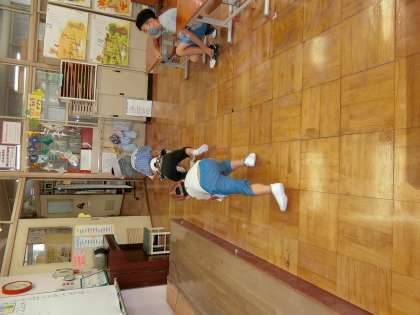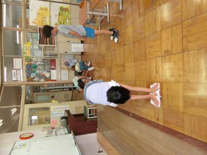 と言ってもらい,上級生がぞうきんがけをしている後を1年生がいっしょうけんめいに追いかけていきます。その様子が何ともいえず微笑ましい。