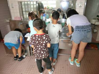 先頭に立って床ふきをしたり,1年生の様子をよく見て頑張っているところをほめたり,よく考えて1年生にアドバイスをくれる5年生,さすがです。