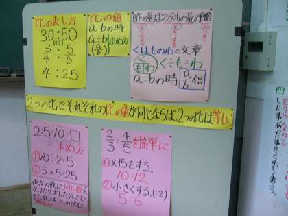 比の学習を進めていく上で教室掲示も重要です。