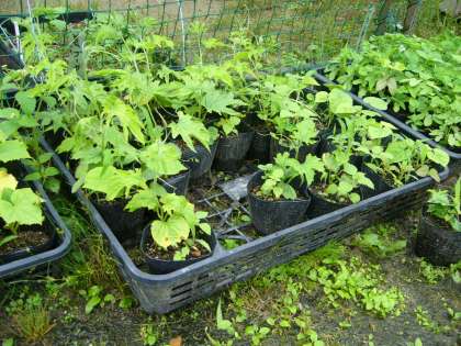 緑のカーテン用に発芽から世話をしてきたゴーヤが、そろそろプランターへ植え替えをする時期となりました。