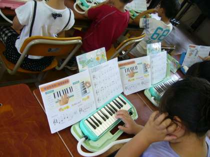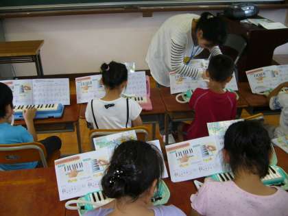 1年から初めて2年目になる2年生です。どの指を使うのか手を鍵盤の上におき練習していました。