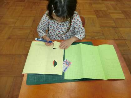 方眼紙を使って作った四角い窓や△の窓,円い窓,そして自分で考えたオリジナルの窓,いろいろな窓を作ろうと頑張っています。
