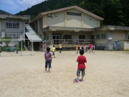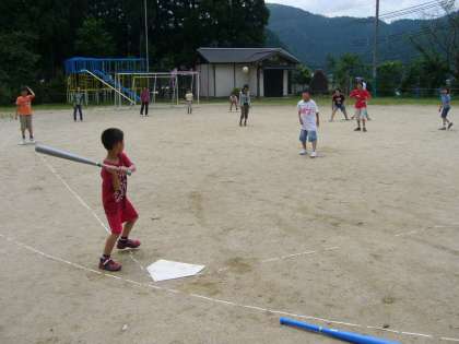 教師の指導の下、野球型のゲームを楽しんでいました。蒸し暑い日でしたが歓声が響きました。ルールのよくわからない児童もいましたがなんとなく少しずつ覚えています。