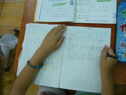 3桁の整数の表し方をノートにまとめていました。考えを書く学習です。考えを伝えることにもつながります。