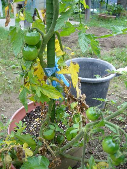 鉢植えのプチトマトが実をつけています。