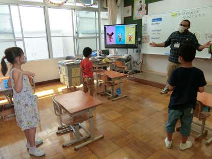 今日はALTのルイス先生が1年生の教室に来てくださり,子どもたちと楽しく英語活動の学習をスタートしました。