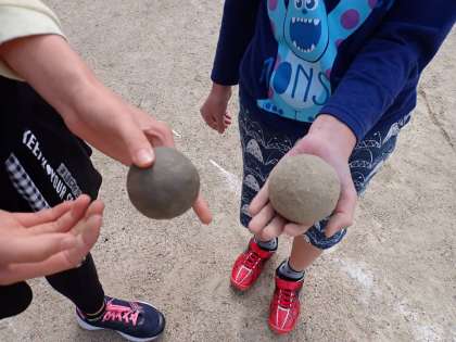 少し前から、どろだんご作りに熱中する人が出てきました。休み時間のたびに、自分のおだんごを撫でまわしています。愛情たっぷりに育てているので、キラッと光るツヤツヤのどろだんごになるでしょう。