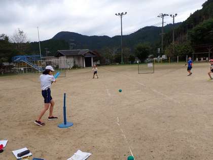 体育ではベースボールをしています。野球盤の要素を少し取り入れ、楽しみながらも接触しそうなプレーを減らしています。このときは、守備が上達し、次はバッティングを良くしたいと話す子が多かったです。