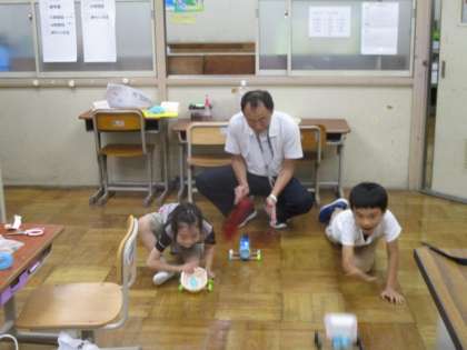 今日の5校時,1年生は安全ノートを使って避難訓練について学習していました。2年生は,生活科のあそんでためしてくふうしての学習で,自分たちで作ったものを担任の先生と一緒に楽しみながら試していました。