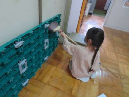 静原校では,児童それぞれそうじ場所が割り当てられ,1年間その場所を責任を持ってきれいにします。