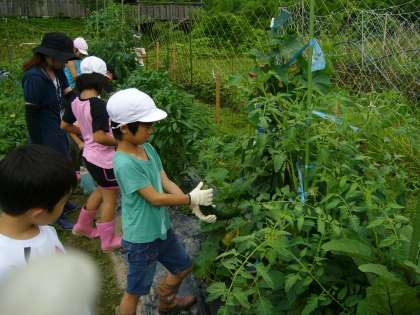 きゅうりやトウガラシが実をつけています。大きく育ちました。