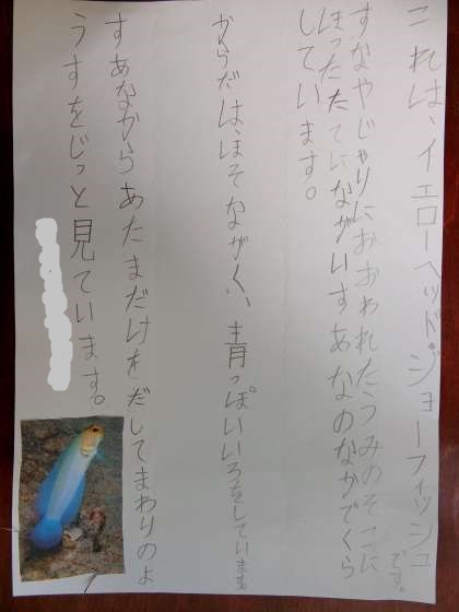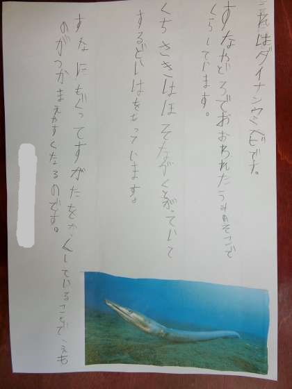国語科の「うみのかくれんぼ」の学習の最後に,子どもたちが自分で決めた生き物について調べたことをまとめました。