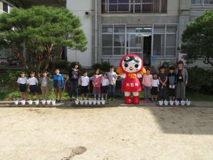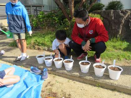 初めに挨拶や始めの言葉、校長先生からのお話などがあり,「スイミー」の読み聞かせの後,水仙の球根を各グループで植えました。3月には白い花が咲くそうです。