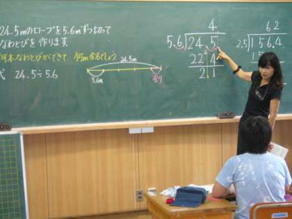 小数で割ると商の小数点の位置はどのようになるかについて確かめました。やり方がわかれば、問題解決できます。