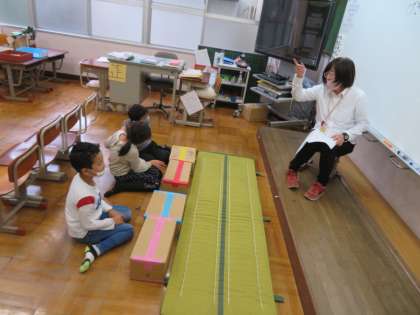 今日の5校時,1.2年生の学習の様子を見に行きました。