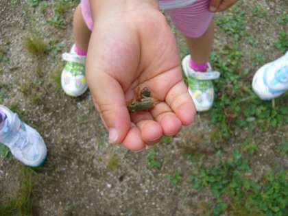 草むらに行くとかえるやカマキリの小さいのを見つけては捕まえています。また放してまた捕まえてです。