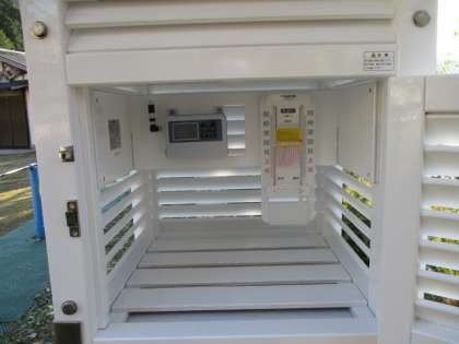 本校の百葉箱が新しくなりました!一般の物と比べてやや小ぶりですが,理科などの学習で使用するには十分です。箱の中身は,標準の乾湿計と気温・湿度を継続して計測できるデータロガーが入っています。また,学習発表会などで来校されたときにでも一度ご覧ください。