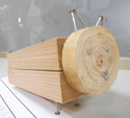 色々な木材を組み合わせて,釘を打ち付けて作品を作ります。