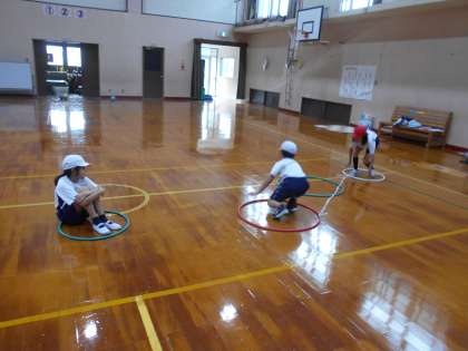 体育科「フレアスポーツ(用具あそび)」の様子です。