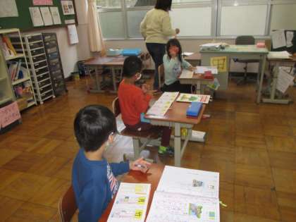 今日の5校時,1年生は漢字の練習「竹」を頑張っていました。書く前に,ちょっと難しいかなと言っている子もいました。2年生は,音楽で「かねがなる」の歌唱を二人で頑張っていました。仲良く取り組んでいる姿は,やはり見ていても微笑ましいです。