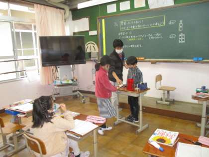 3年生は,理科の学習で懐中電灯がどうやって点灯するのかを,回路など習ったことをもとにして考えていました。みんなそれぞれ考えがあり,熱心に話す様子が見られました。5年生は,算数のテストの時間でした。静かに集中して取り組んでいる姿は,最高学年としての自覚を醸し出しているように見えました。