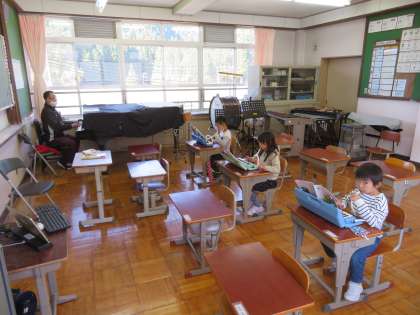 1年生は音楽の学習で,鍵盤ハーモニカの練習や歌を楽しく歌っている様子が見られました。