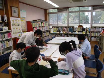 3年生は,図工でいろいろうつしての学習でした。写る形を考えながら動きに注意して版を作成していました。5年生は,社会で情報産業とわたしたちの学習でした。みんなが図書室で熱心に調べ学習に取り組んでいました。