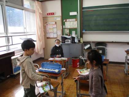 今日の5校時,1年生は道徳でひつじかいのこどものお話について学習していました。うそを何回もつくとどうなるのかを熱心に考える姿が見られました。2年生は,音楽でかくれんぼの歌に合わせてじゃんけんをし,2人で実際に音楽室でかくれんぼをしていました。とても楽しそうに活動していたので,見ているとこちらも笑顔になりました。