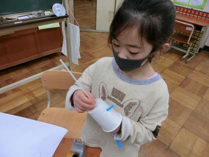 パタパタするストローを使って。