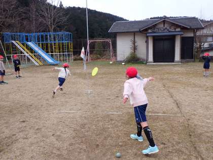 それでも何とかコントロールしようと友達の投げる様子を見たり,