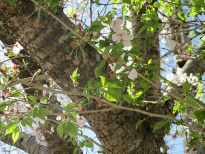昨日からの雨で,桜の花びらがだいぶ散ってはいましたが,今朝の様子を見るとまだきれいに咲き誇っています。木の下の部分にだいぶ緑が見えてきましたが,3日経ってもまだ桜が咲いた入学式になるのではと思っています。今回の気温・湿度は,15時現在の数値です。
