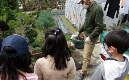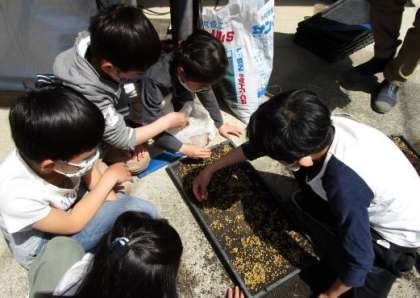 地域の方に教えてもらった後,6年生に手伝ってもらいながら種をまきました。