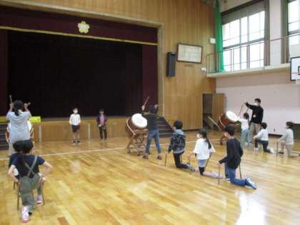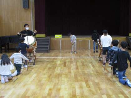 今日の伝承太鼓の様子です。リズムをそろえるのはまだまだこれからかもしれませんが,待っている姿勢やたたき方は少しずつ良くなってきているように感じます。春まつりの日までに,しっかりと自信をつけて頑張ってほしいと思います。