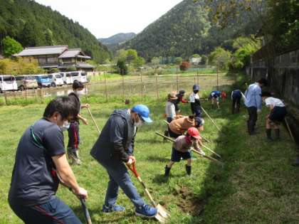 今日の2・3校時に,学校近くの田んぼの田起こしを3年生以上の児童で行いました。昨年は8名だったのが,今年は10名と増えたものの,自分たちの手で耕すのは大変だったようです。毎年お世話になっている地域の方やALTの先生にもご協力いただき,まさにチームとしてみんなで頑張っていました。静原小学校としての米づくりは今年が最後なので,稲刈り・脱穀まで無事に終われるようにしていきたいです。