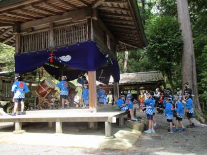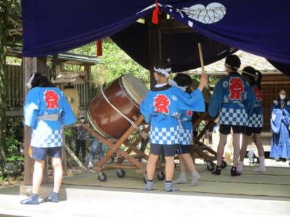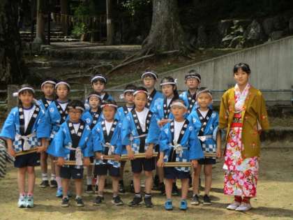 先ほどの続きです。本校6年女子児童が,「御幸もち」として春まつりに参加していましたので,太鼓は叩くことができませんでしたが立派に大役を果たしていました。