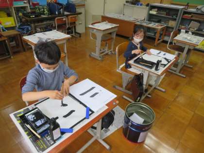 ゴールデンウィークが明け,3年生は5校時に,久しぶりの書写(毛筆)がありました。