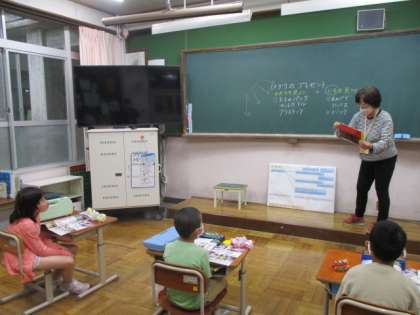 今日の5校時,1年生は国語ではなのみちの学習でした。自分がお気に入りのところについて,それぞれ発表していました。2年生は,図工でひかりのプレゼントの学習でした。カラーセロハンの合わせ方を工夫することで,いろいろな色ができることがわかったようでした。