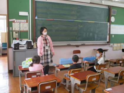 今日の5校時,1・2年生は担任の先生が入れ替わる交換授業でした。1年生は,図工でおってたてたらの学習でした。どんなものが作れそうなのかをみんなで出し合っていました。2年生は,音楽で1年生を迎える会で発表する練習でした。今日はどんなことに気をつけて学習していくのか,みんなでめあてを考えていました。