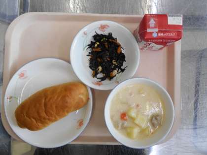 「クリームシチューとパンをいっしょに食べて,おいしかったです。」