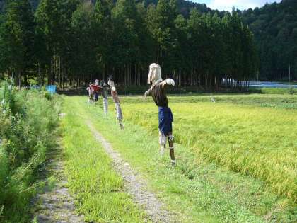 台風の力で「かかし」が倒されてしまいました。