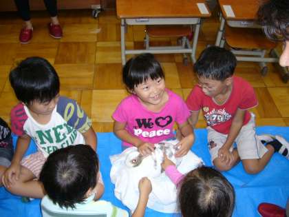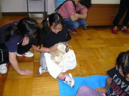 生活科で、ウサギについて獣医さんに教えていただきました。この時間はウサギも緊張しているのか非常におとなしくかわいい姿を見せていました。子どもたちもこれから世話をするレベルが上がると思います。