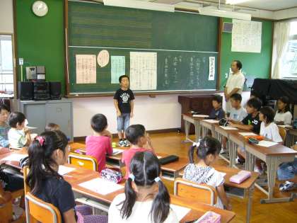 心に残ったことを全校児童に話します。ノーペーパーです。