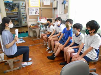 保健指導では1・2年生には「睡眠について」,3・4年生には「脳の働きについて」,6年生には「食中毒について」お話ししました。クイズを一生懸命考える姿や,新しいことを知り感心する姿が見られました。