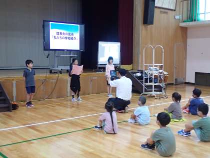 その中でも,4年生は静原小学校の紹介をZOOMを通して市原野小学校の