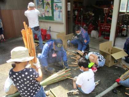 田の虫送りにむけての松明づくり2 7月11日(日)