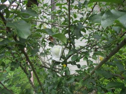今年の春から順調に実っていたリンゴが,だんだん大きくなってきました。今日様子を見に行くと,大人の拳ぐらいまでになっていました。これから梅雨が明けると,より一層大きくなるのでは思っています。