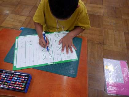 今日はまずカッターナイフの使い方や,カッターナイフの刃がすすむ方には手を置かないなどの気をつけることを確かめてから,活動に入りました。まっすぐ,ギザギザ,ぐねぐねの線を切っていきました。