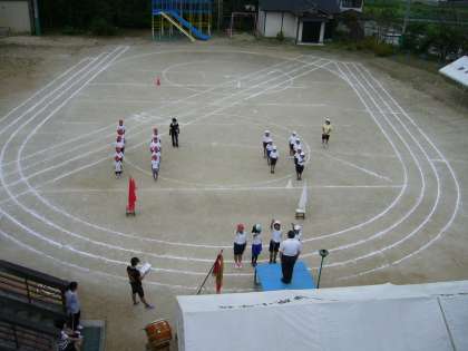 運動場も準備が進み、全体練習をしています。